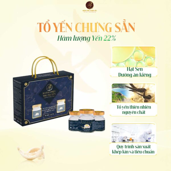 Tổ Yến Chưng Sẵn Hoàng Phúc Thượng Yến Vị Hạt Sen 22% Hộp 6 Lọ