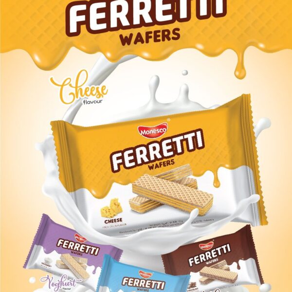Bánh Xốp Ferretti là bánh của thương hiệu Monesco. Đây là thương hiệu nổi tiếng có xuất xứ từ Indonesia với rất nhiều dòng bánh nổi tiếng Bánh xốp Ferretti là sự kết hợp hoàn hảo giữa lớp bánh xốp giòn tan và lớp kem mịn màng, ngọt ngào, mang đến trải nghiệm ẩm thực đầy thú vị. Bánh xốp Ferretti là món ăn vặt lý tưởng cho mọi lứa tuổi.