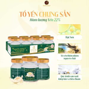 Nước tinh khiết, yến tươi thiên nhiên 22%, đường phèn, chất làm dày (INS 327, INS 401), chất ổn định (INS 331 (iii)), hương hạt sen